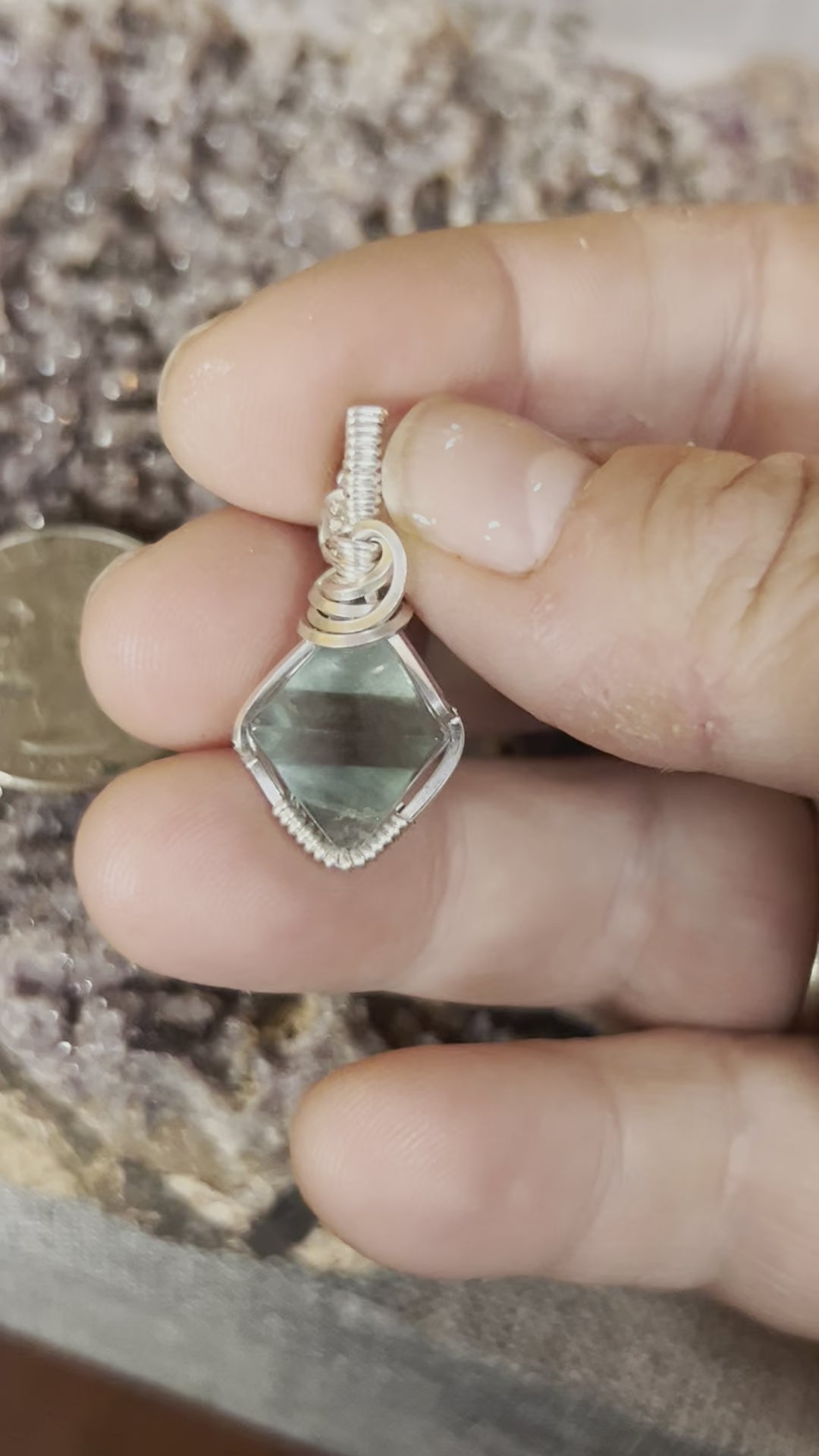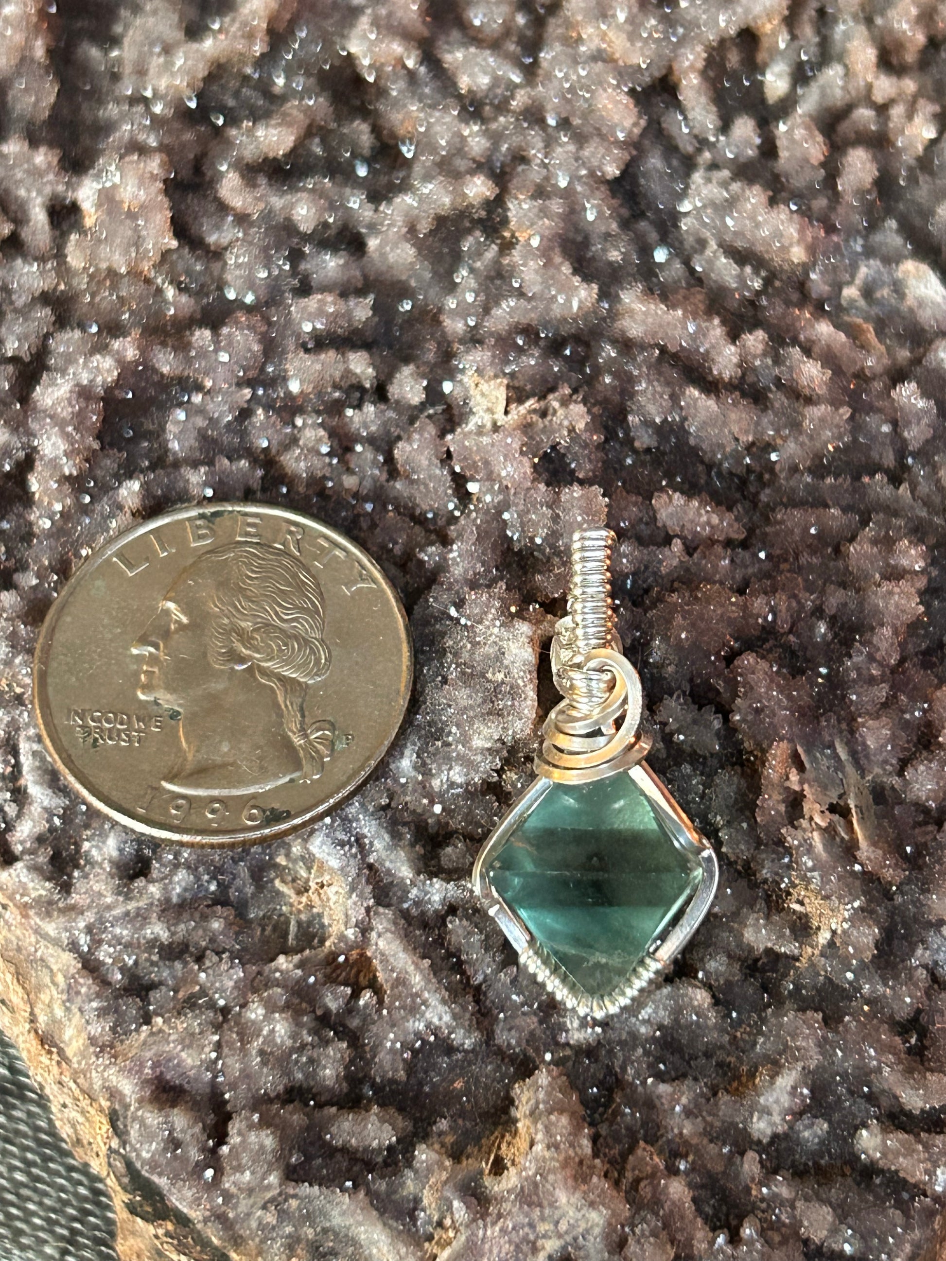 This is a stunning piece of green fluorite!! I wrapped with petite crystal using sterling silver wire. This pendant comes with a silver plated snake chain.