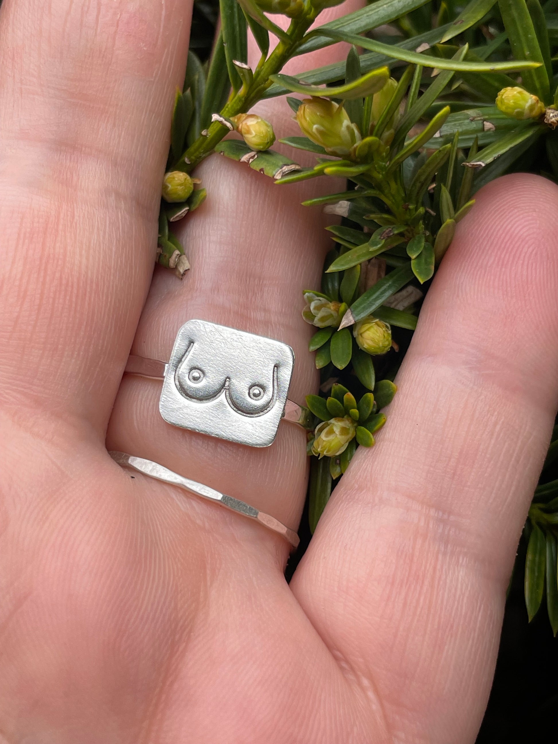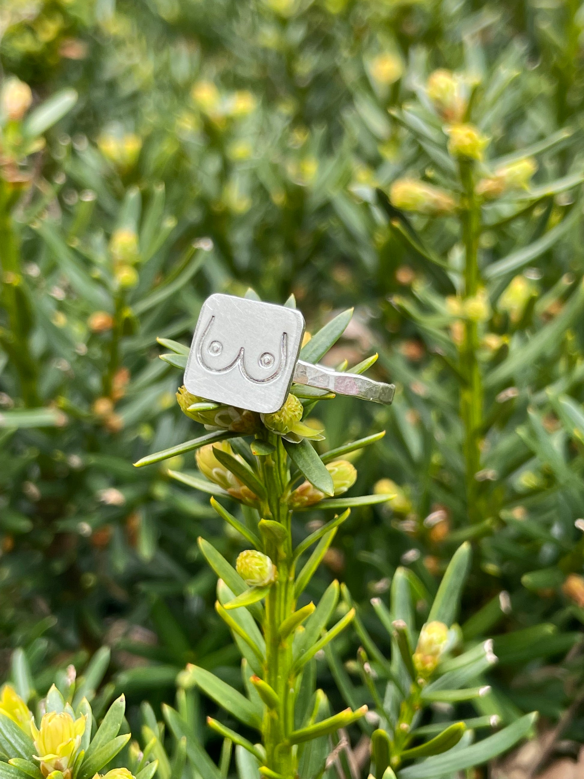 I decided to create this line in honor of my mother who is a breast cancer survivor. This ring can be made in any size from 5-13. All rings are hand made using up-cycled sterling and fine silver. Feel free to let me know what shape you prefer as well.